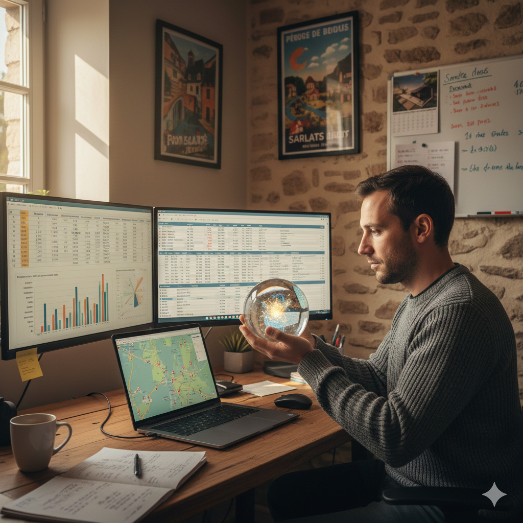 - Fin de saison (Septembre à Décembre) : les réservations sont logiquement encore faibles à ce stade de l’année (ex: seulement 124 nuits réservées pour décembre 2026 à Sarlat), ce qui est habituel pour des réservations prises en janvier.