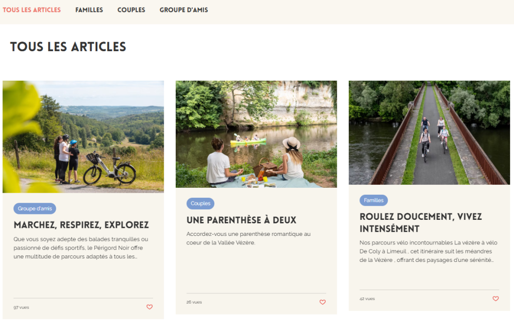 Le visiteur y trouve des informations enrichies, davantage de visuels, de renseignements pratiques ainsi que des suggestions de circuits adaptés à différents profils de clientèles : couples, familles ou encore groupes d’amis.
